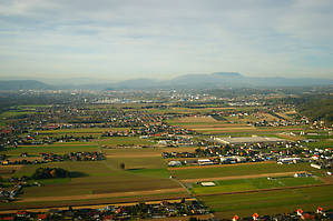 Наконец, все было готово. Мы запрыгнули в тесную корзину, отстегнули трос, и полетели. Происходило все, надо сказать, достаточно быстро: не успели оглянуться — уже пара тысяч футов. Под нами проплывали аккуратные австрийские домики, идеально обработанные куски земли, кукурузные поля, леса и многое другое.