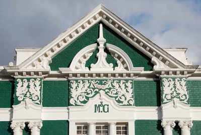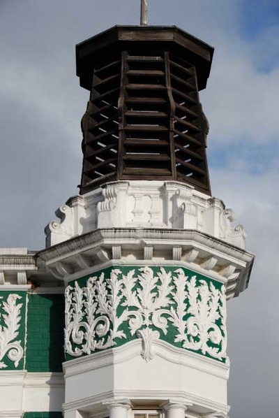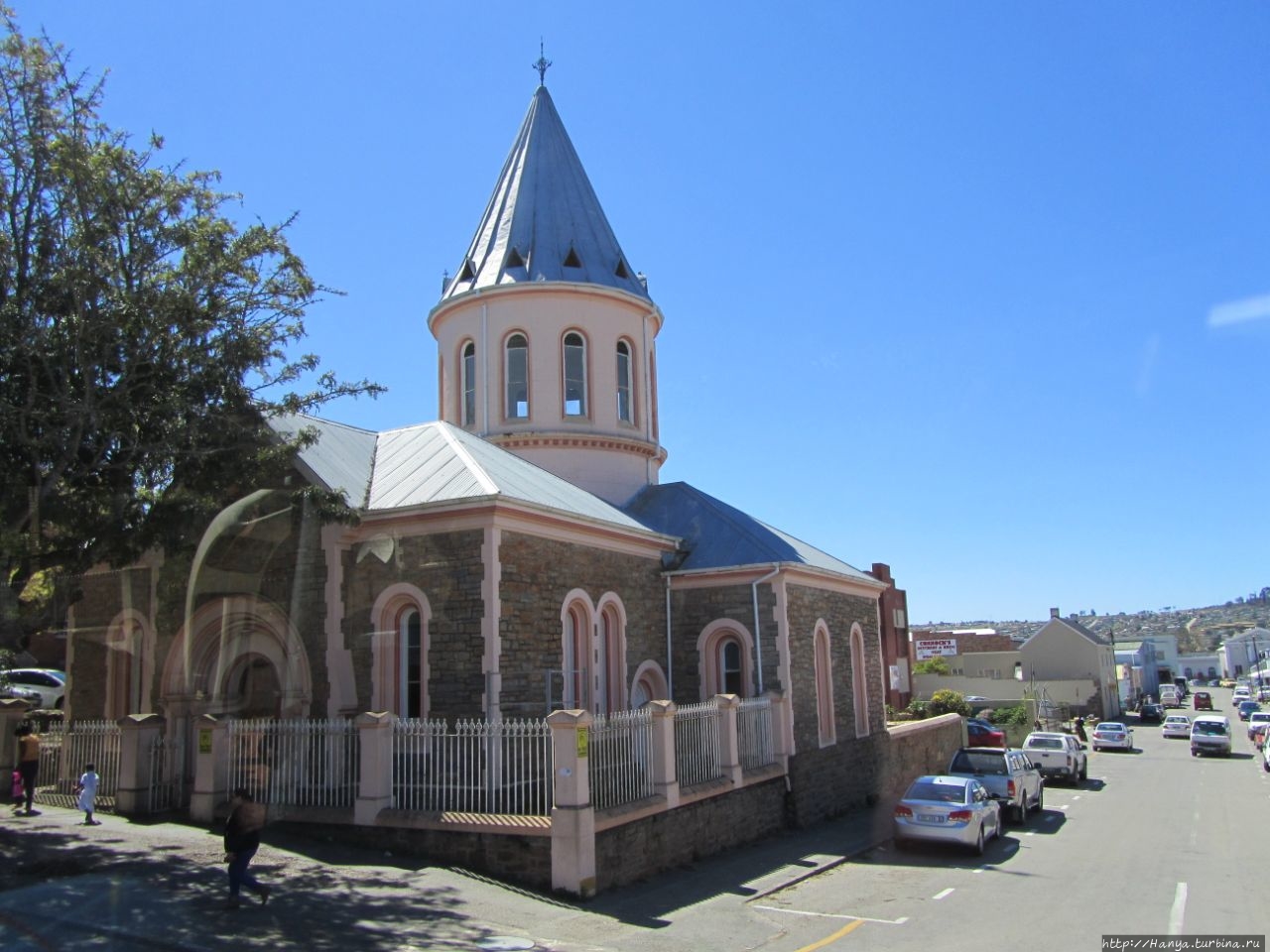 У этого бело-голубого двухэтажного здания великолепный необарочный фасад, треугольный фронтон и угловая башня. Замысловатый карниз и фриз, сдвоенные колонны и ряд окон. Однако оригинальный фасад был уничтожен в ходе пожара 1906 года, а нынешнее здание было перестроено уже в 1907 году упоминавшимся мной архитектором Х. Уокером из Порт-Элизабет.