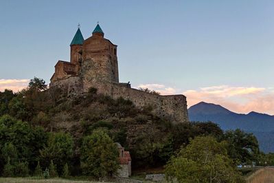 Замок Греми – это одно из самых красивейших мест в Кахетии. Он был возведен в 15 веке на скале.