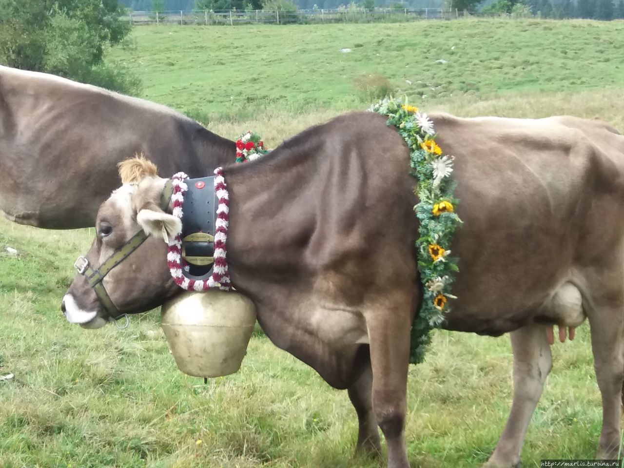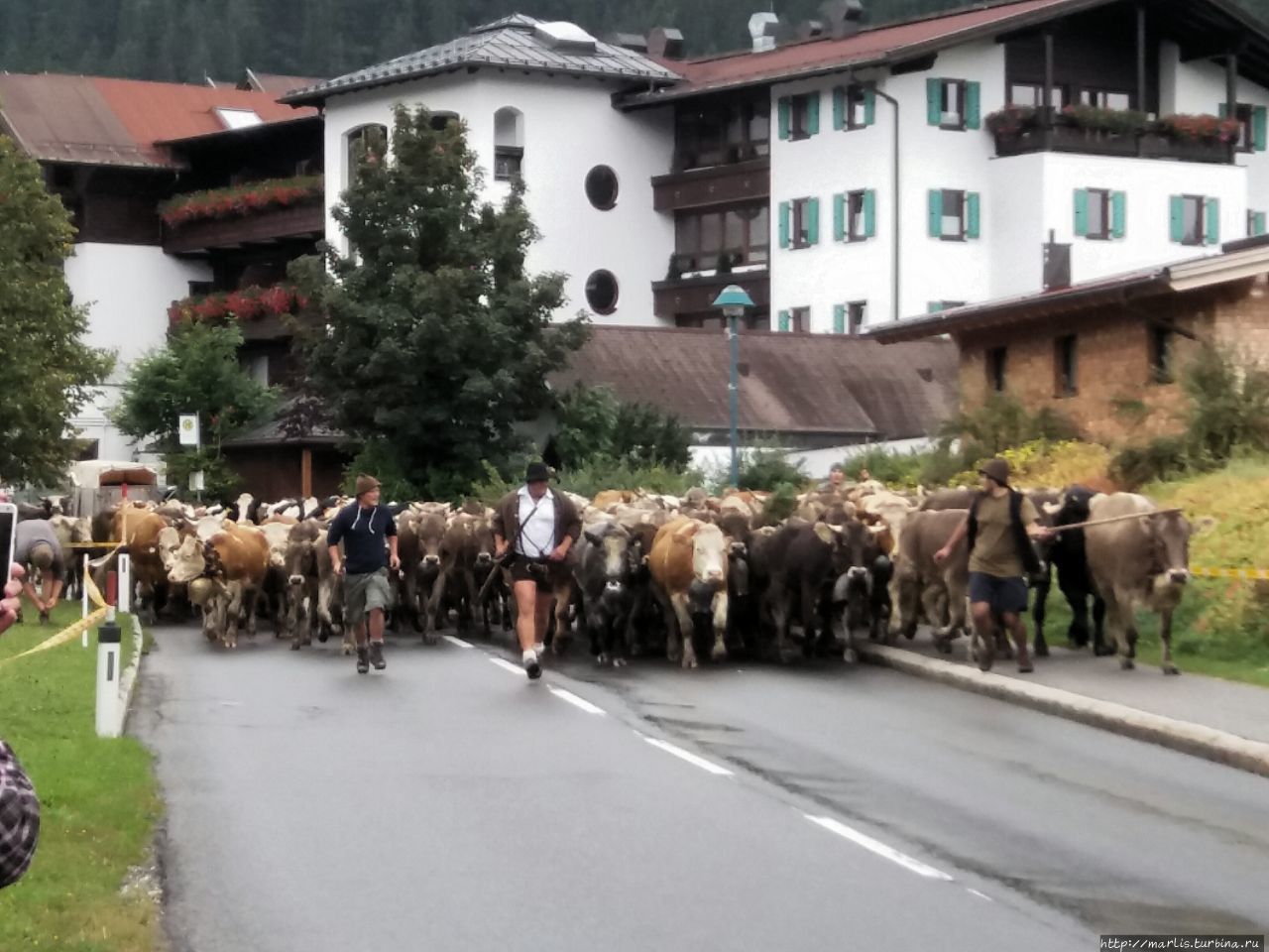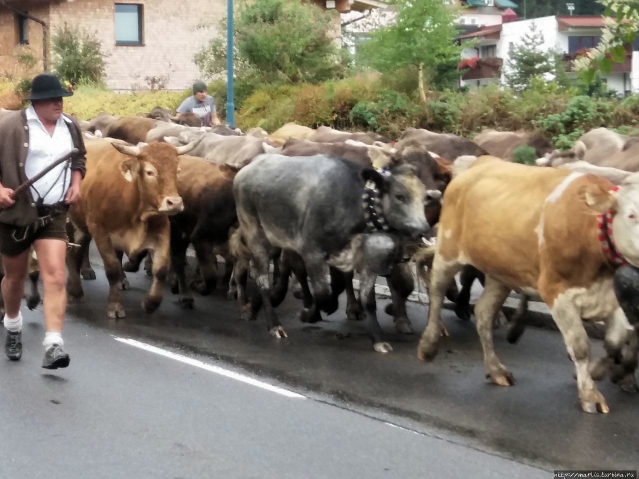 Время нашего пребывания в Тироле совпало с Альпийским праздником возвращения скота с высокогорных пастбищ — Альмабтриб. Раньше Альмабтриб был настоящим крестьянским праздником, "кормилица" возвращалась домой.