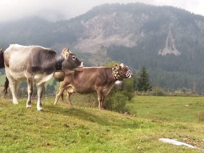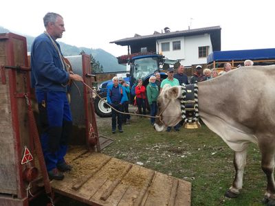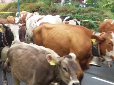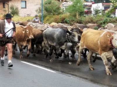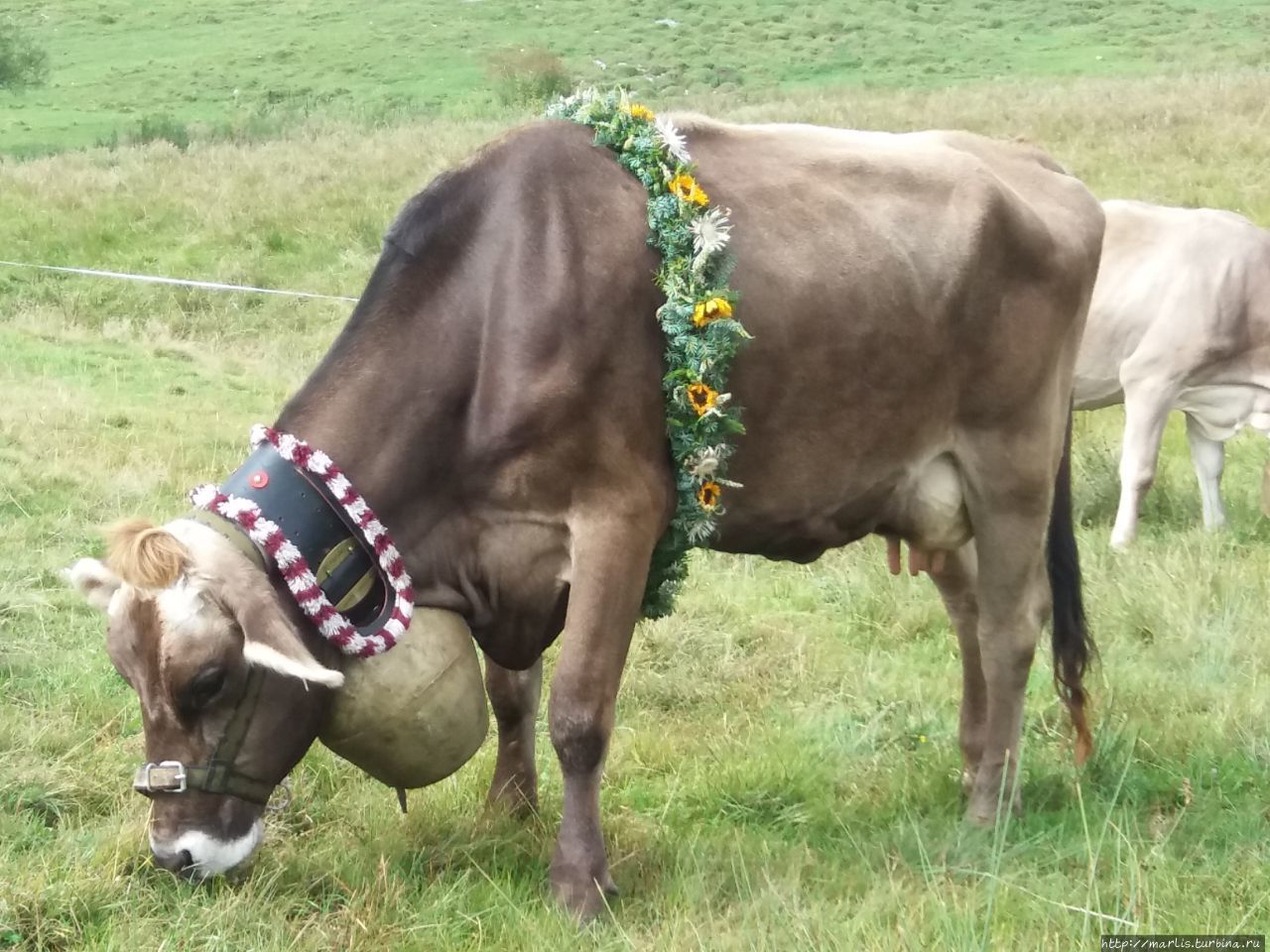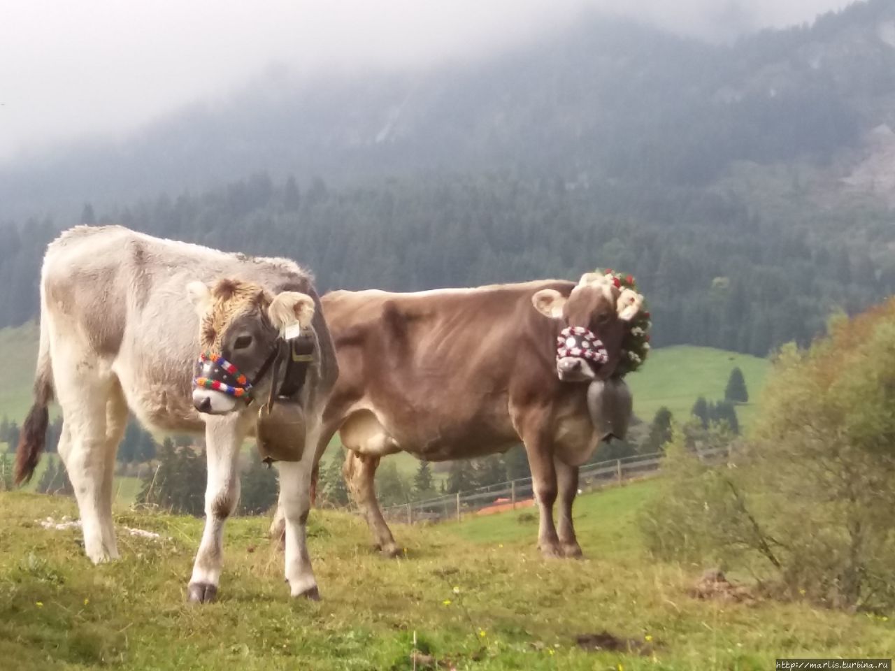 Время нашего пребывания в Тироле совпало с Альпийским праздником возвращения скота с высокогорных пастбищ — Альмабтриб. Раньше Альмабтриб был настоящим крестьянским праздником, "кормилица" возвращалась домой.
