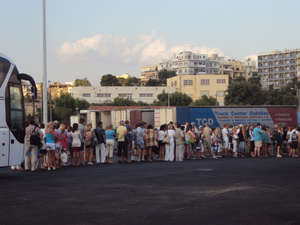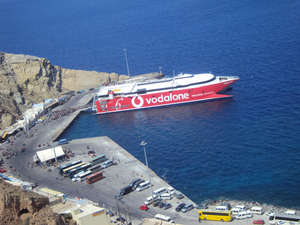 Наше путешествие началось ранним утром из порта Ираклиона, морской паром загружал и туристов и ....автобусы