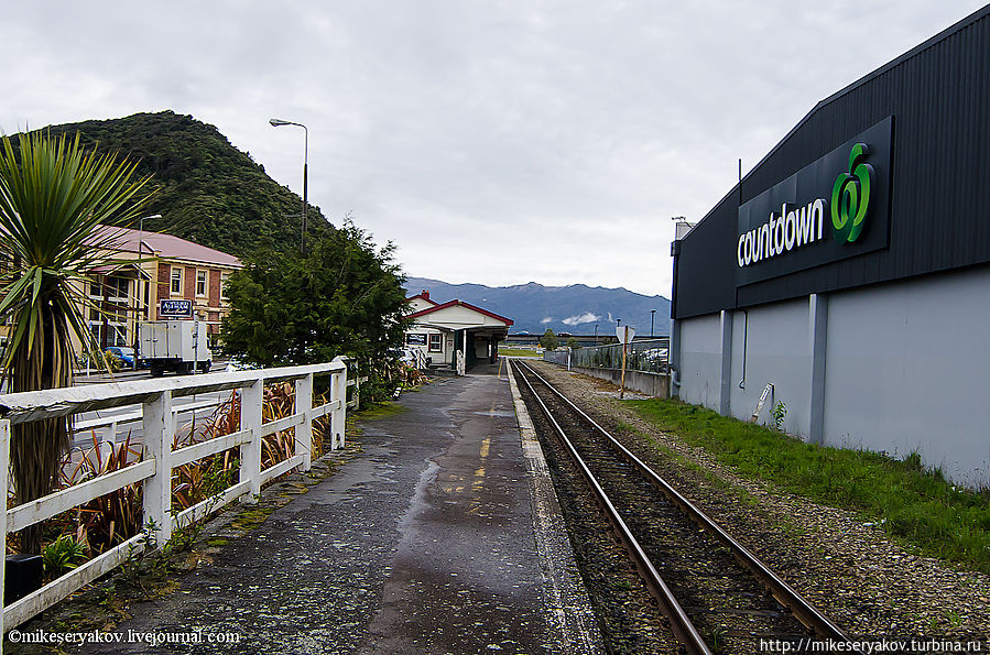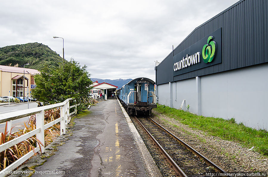Новозеландский "киви-поезд" прибывает на вокзал и я отправляюсь в свой последний переезд в Новой Зеландии ГрейМаус – Крайсчерч.