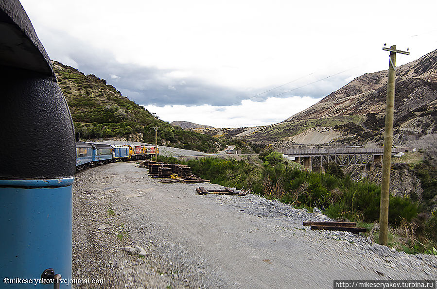 А тем временем «киви-поезд» идёт по красивейшим местам, пересекая прекрасные мосты.