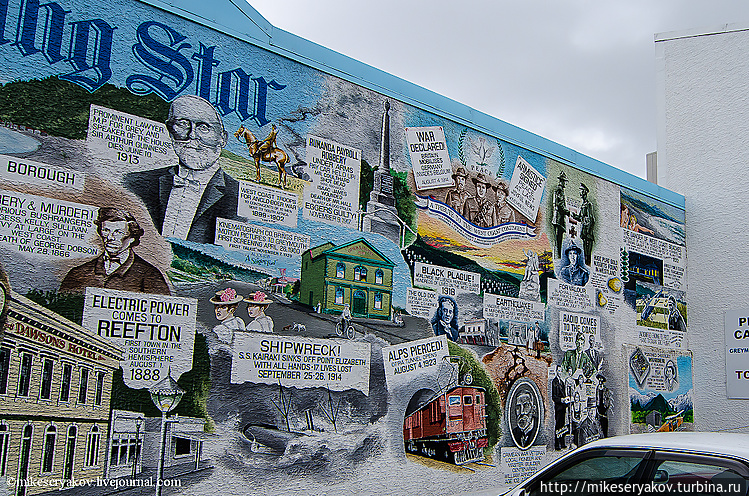 Потом автобусный путь от ледника до Греймауса, где находится железнодорожный вокзал с короткой остановкой в городе Хокитика, где я все-таки, купил себе новозеландские «уги» для суровой московской зимы. Но они приказали долго жить и «суровую московскую зиму» выдержали лишь 2 недели, сразу отправившись потом в ремонт, так как мех внутри начал ни с того ни с сего отклеиваться кусками.
