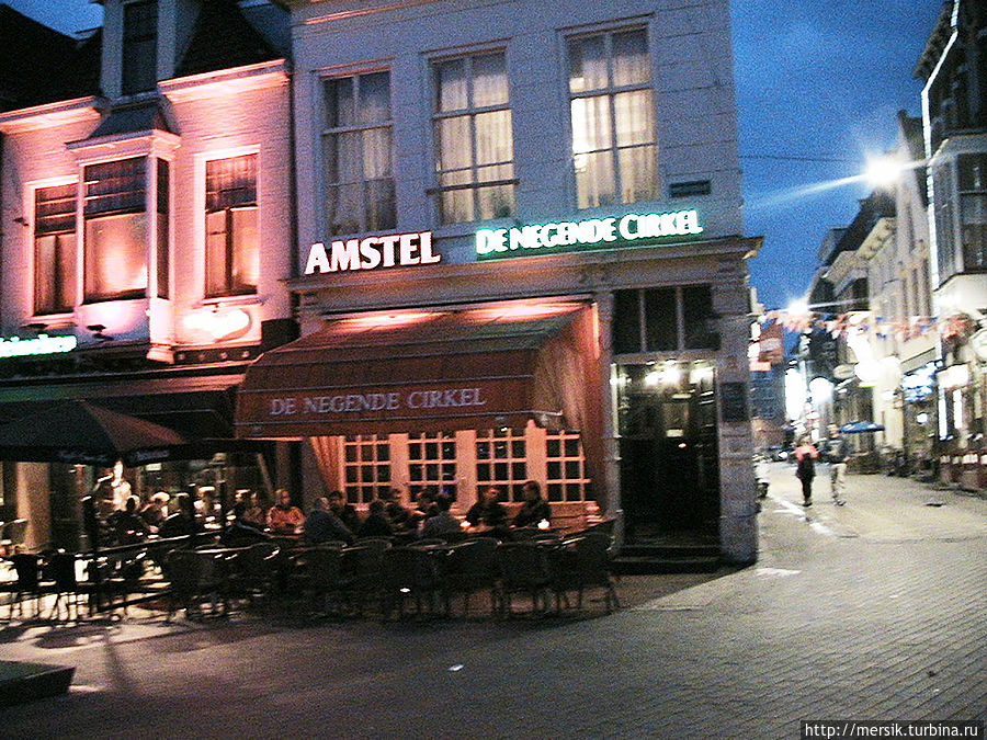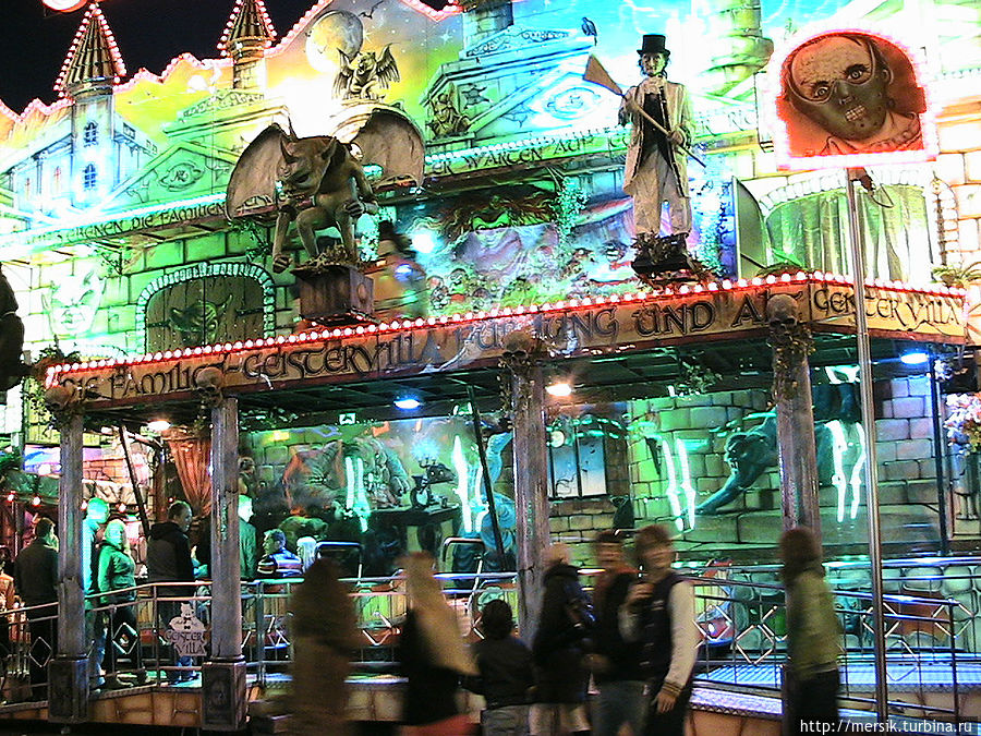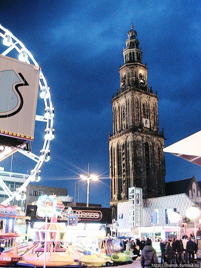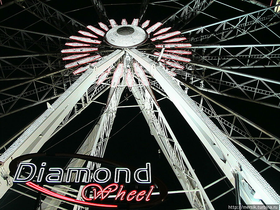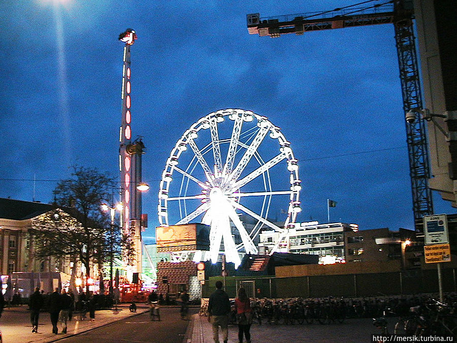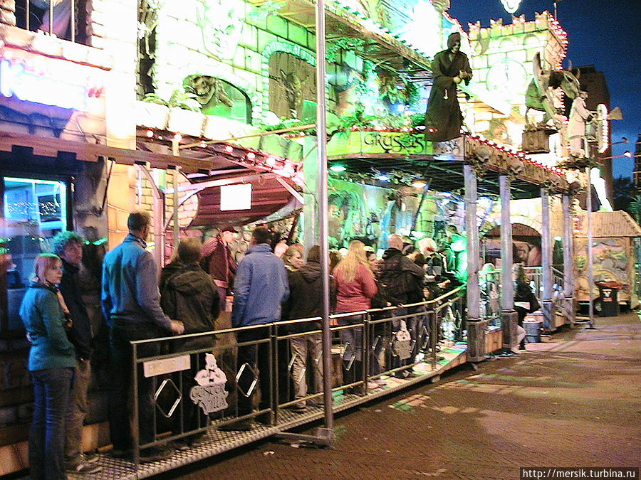 Вечер оказался безветренным и недождливым и поэтому мы решили погулять по вечернему городу, предполагая, что как раз ночью то все и начинается. Так и есть, на главной площади гремела музыка и работал огромный парк атракционов. Не известно, бывает ли у них так всегда, но в тот вечер народ веселился, отдыхали в основном студенты, однако встречались и семейные пары с детьми, и люди постарше. Обожаю быть среди студентов, может потому, что сын студент, может потому, что сами были когда-то ими и это одни из самых лучших лет в нашей жизни, может потому, что энное количество лет я проработала в ВУЗе. Затрудняясь воспроизвести название атракционов, могу сказать, что- назовем их "Американскими горками"- и у них, и всегда очень страшно, однозначно перед пивом, "Осьминог"- менее страшно, но лучше перед едой, колесо обозрения- совсем не страшно, в темноте же реально убаюкивает