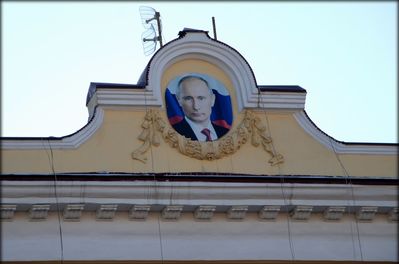 Владимир Владимирович наверняка знает про такую честь, но я уверен, что не в восторге от этого. Хотя, когда вы увидите на многих зданиях фото президента, нужно понимать, что вы на Кавказе и тут совсем другое отношение к уважению и его проявлению.