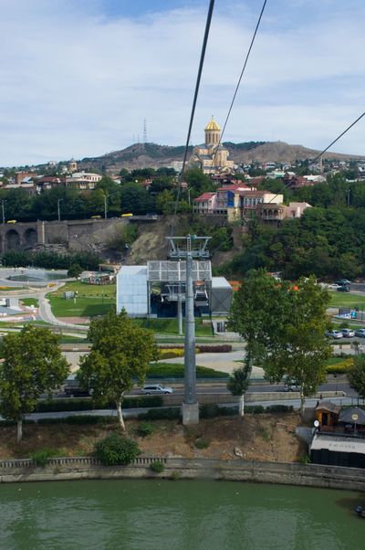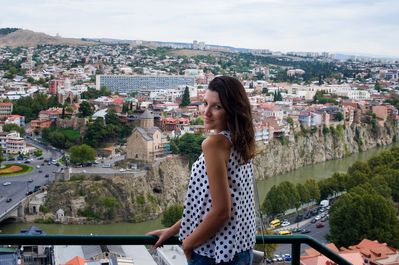 Канатка еще не работала и мы пошли искать кофе, а день радовал солнцем... А это здание культурного комплекса. Нашли улочку с множеством кафешек, вроде Ираклия 2)) План был следующий, подняться на канатке к крепости Нарикала, осмотреть Тбилиси с высоты и спуститься через знаменитые серные бани старого города. Первые упоминания о крепости относятся к V веку. С VII века она была не раз завоевана византийцами, монголами, а затем арабами. Достаточно долго Нарикала являлась центром Грузинского царства. На канатку была небольшая очередь, но уже скоро мы поехали наверх) До этого с канатными дорогами как то не складывалось. В Ялте неоправданной оказалась цена, на Ай Петри не получилось из за тумана, в Батуми не нашлось времени ... и вот) Встретили торжественно) в Тбилиси много таких цветущих красоток)) Так выглядит Тбилиси с крепости Нарикала. Прямо за мной, на скале, над рекой Кура, храм Метехи. А это Абанотубани, район серных бань – одно из самых удивительных мест старого города. Сами бани находятся ниже уровня земли, на поверхности видны лишь полукруглые своды-купола. История Тбилиси как раз и начиналась в районе этих теплых лечебных источников, от которых город и получил свое имя. Ведь в переводе с грузинского «тбили» («тфили») означает «тёплый». Подробное описание тбилисских бань можно найти у А.С. Пушкина в «Путешествии в Арзрум»)) В этом районе много узеньких улиц и колоритных балкончиков Еще немного грузинской живописи)