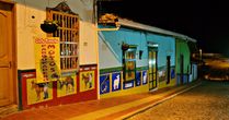 С отелем оказалось не просто, чего я в общем то и ожидала. Мест по нужной мне цене не было. Надо было торговаться, что я и сделала. С учётом торга мне достался номер в одном из отелей за $12, да ещё с горячей водой. Ах да! Горячая вода была везде, только в жаркой Букараманге в ней не было надобности. Вы думаете я сразу легла спать? Нет, хоть и была уставшая, спать не легла. Сумеречный город меня поразил искусно созданными рисунками на фундаментах и стенах домов, его узкие улицы имели крутые спуски и подъёмы, а домики плотно и как-то весело мостились вдоль проезжей части.
