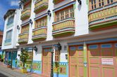 Знаете, вот честно скажу, не верилось, что в домах проживают обычные колумбийские семьи, но все мои подозрения в подвохе улетучились, когда я поняла, что весь абсолютно город разрисован и даже его окраины пестрели красками. А ещё под городскую разрисовку попали все государственные учреждения: школы, больницы, детские сады, церкви и даже здание муниципалитета.