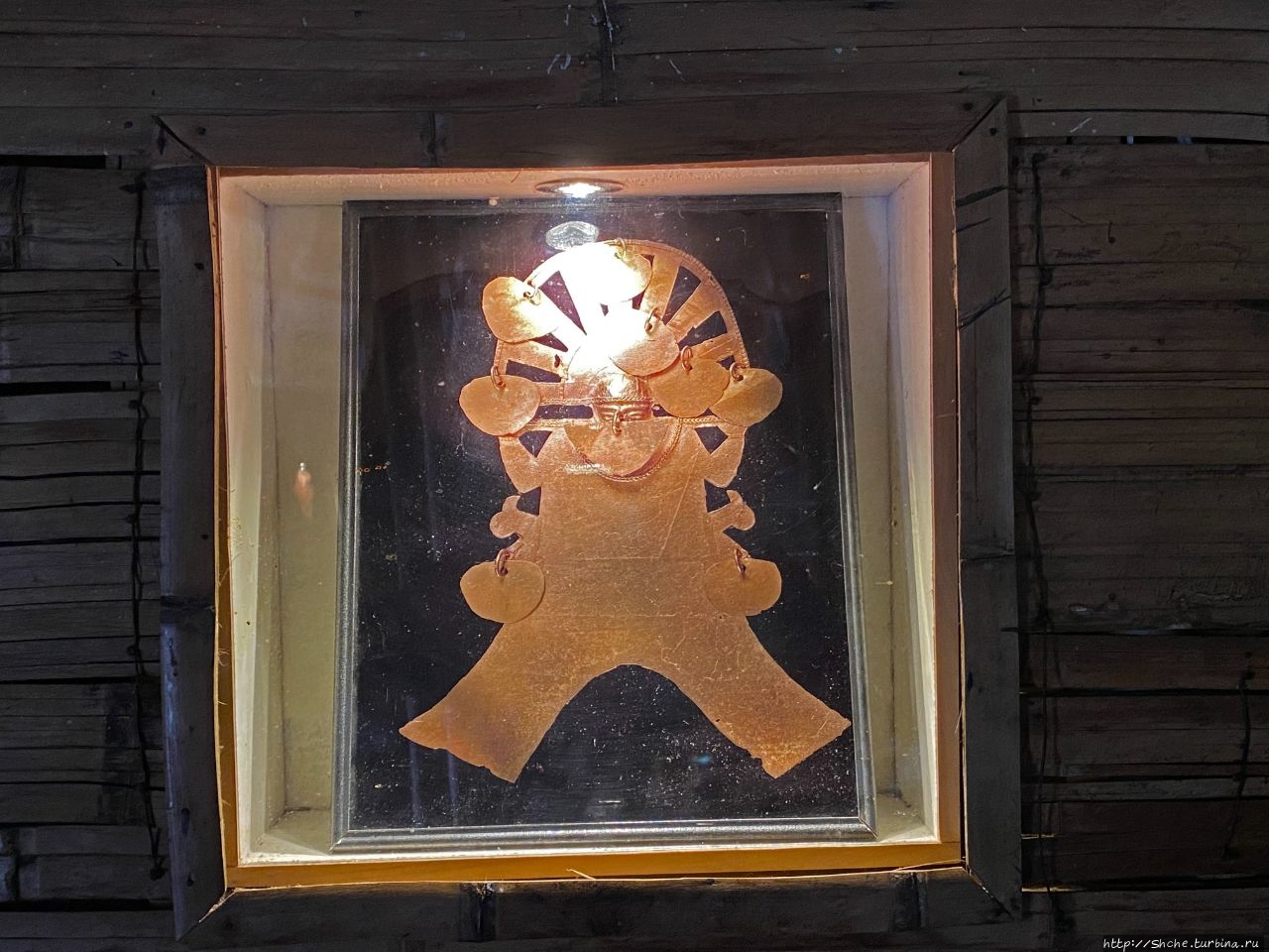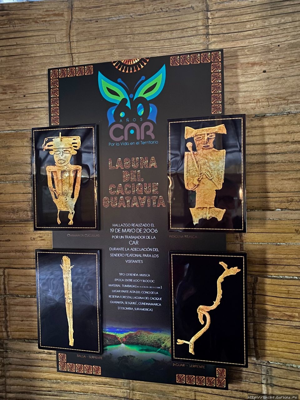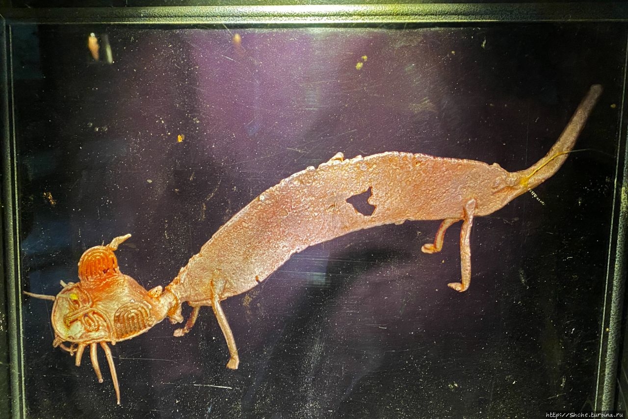 Здесь на стенах вывещены изображения золотых предметов, найденных в священном озере Гуатавита...