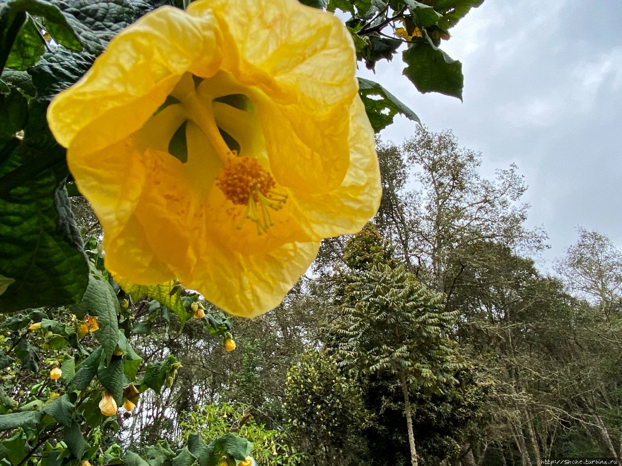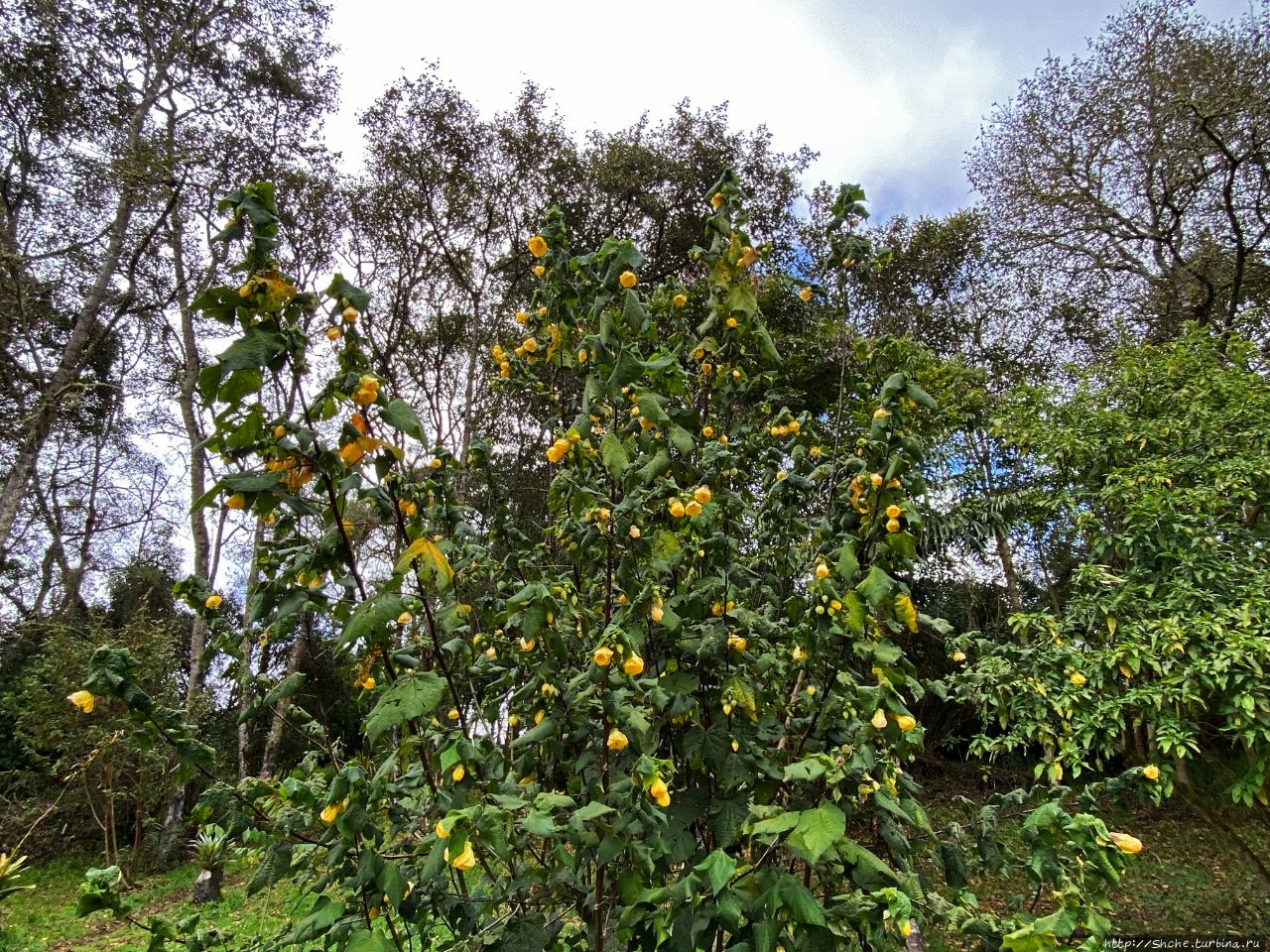 Первая часть пути проходит по дорожкам небольшого ботанического сада, где можно познакомится с расстениями, которые используют местные шаманы для входжения в транс. Вот этот, цветущий желтыми цветами куст, например...