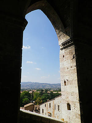 основанием которой служат гигантские арки нижнего уровня.Вместе с площадью начинается возведение двух прекрасных дворцов Palazzo dei Consoli (Здание Городской Ратуши) и Palazzo del Podestà (Резиденция правителя города) по проекту итальянского архитектора Angelo da Orvieto