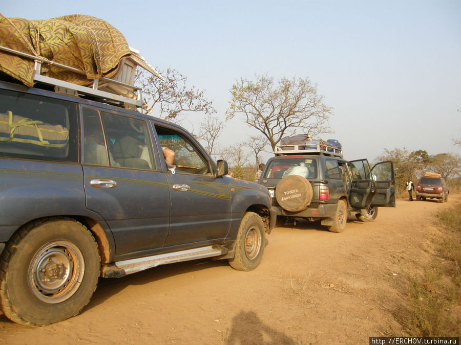 Дороги в Гвинее очень сложные. Там, где нет асфальта, пыль от машин поднимается жуткая, ехать вторым или третьим весьма неприятно. Правда встречается и асфальт. Гвинея одна из самых бедных стран мира, и парк машин естественно старый.