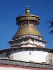 Раскрутив все барабаны при входе, заходим на территорию комплекса и идем к многоярусной ступе Кумбум (или Пагода тысячи Будд) высотой в 32 метра.