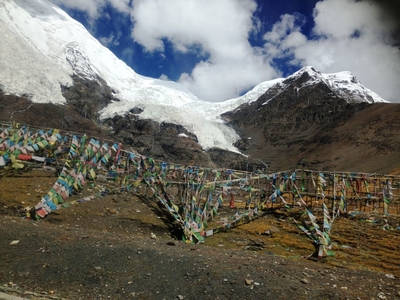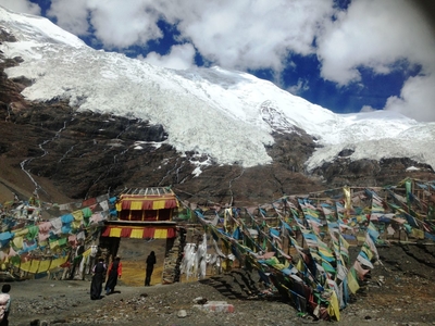 Через час мы достигаем вершины горного перевала высотой в 5 020 метров над уровнем моря, и называется он Гарола. Сюда едут не только полюбоваться на перевал, но и на один из самых легкодоступных одноименных ледников в Тибете.
