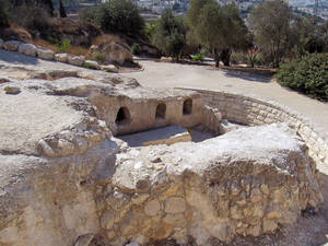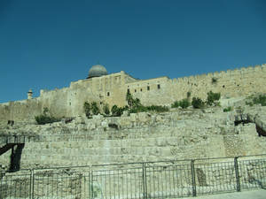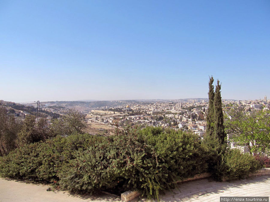 Итак, до Иерусалима с остановкой на завтрак в придорожной кафешке мы добрались примерно за два часа, что очень неплохо. Первая остановка, как и у всех остальных групп – обзорная площадка на Масличной (Елеонской) горе, вернее, на одной из её трех вершин, горе Скопус, где расположен Еврейский университет. Гид пристраивает нас в небольшое пятно тени и рассказывает, что где, одновременно предупреждая о необходимости следить за содержимым карманов. Первое впечатление от отражения Града небесного на земле — что-то очень припыленное, неброское, вовсе непохожее на яркие нагромождения кубиков с сувенирной керамики. Всматриваемся в лежащую перед нами Храмовую гору. Самое яркое пятно – золотой купол мечети Куббат ас-Сахра («Купол Скалы»), построенной 687-691 гг. на месте разрушенного римлянами Иерусалимского храма. Внутри мечети находится скала, с которой, по преданию, пророк Мухаммед совершил мирадж, т.е. вознесся на небо. Рядом с Куполом скалы – очень скромная на вид третья по значению святыня мусульманского мира — мечеть аль-Акса. Очень хорошо видна со смотровой площадки «Русская свеча» — 64-х метровая колокольня церкви Вознесения Русского Православного Елеонского женского монастыря, принадлежащей Русской Православной церкви за рубежом. Совсем рядом с монастырем стоит часовня Вознесения, где находится камень с отпечатками ступни Иисуса, по преданию, оставленный им перед вознесением на небо. Неподалеку нарядная православная церковь св. Марии Магдалены, построенная на пожертвования императора Александра III в память о его матери, императрице Марии Александровне. Склоны Масличной горы и простирающееся внизу Кедронское ущелье занято еврейскими захоронениями, первые из которых появились здесь еще в эпоху Первого храма. Быть похороненным в этом месте — особая честь, т.к. считается, что когда Мессия взойдет на Масличную гору, именно отсюда начнется воскресение мертвых. После любования панорамой, быстрого осмотра находящихся здесь пещер, служивших фамильными склепами и традиционного фотографирования мы отправляемся к западному склону Масличной горы, в Гефсиманию, где находится Гефсиманский сад, Церковь Всех Наций и Церковь Успения Пресвятой Богородицы. Через неприметную калитку в каменной ограде попадаем в Гефсиманский сад, в котором, по преданию, Иисус провел ночь перед предательством и арестом. Сад небольшой, да и на сад похож не сильно, но вот эти цветы, которые растут среди древних олив, меня почему-то зацепили. Если суметь абстрагироваться от толпящихся вокруг людей и сконцентрироваться на библейских событиях, принимаете ли вы их на веру или расцениваете только как легенду, место это начинает восприниматься абсолютно по-особенному. Ведь именно здесь происходило Моление о чаще. С 1681 г. это место находится в собственности Ордена францисканцев. В 1924 г. здесь на месте более ранних построек была освящена католическая церковь, деньги на строительство которой пожертвовали католические общины 12 государств, и названная Церковью Всех наций. Церковь достаточно помпезная и с моей точки зрения явно не шедевр архитектуры, но внутри находится камень, на котором, как считается, молился Христос перед арестом. Да, еще от церкви открывается отличный вид на городские стены и Золотые ворота, единственные, которые ведут прямо на Храмовую гору. Из-