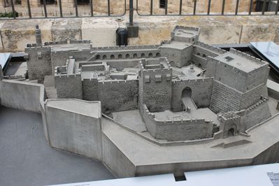 На этом месте изначально находился Дворец Ирода. Во дворе крепости можно увидеть скрещенные конструкции, прилегающие к стене. Это фундамент