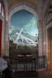 Слева будет третья стоянка — вход в небольшую часовню. Над входом Иисус, падающий под тяжестью своей ноши. Внутри небольшой часовни полотно с таким же сюжетом.