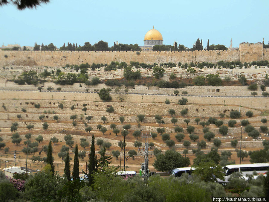 Полюбуемся на древние оливы в Гефсиманском саду, на златоглавую церковь Марии Магдалины и спустимся по склону к церкви Всех наций.