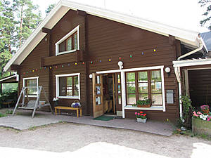 Хороший отель в тихом месте. Напротив входа стоит такой вот симпатичный резиновый медведь. А повсюду цветут цветы. А мы в тот раз остановились в пригороде на берегу озера в деревянном отеле Лома Хови. И очень даже неплохо провели летний вечер за бокалом вина на природе. В отеле есть лодки, детская площадка, мангал. Озеро очень красиво! Повсюду цветы. А ещё мне понравилось как финны расписывают камни. Место вполне приемлемое, но не для любителей комфорта. Детали тут —