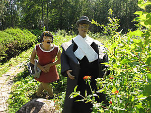 Через два часа мы въехали в Париккалу, где запланировали сделать остановку. Выбор места обуславливался желанием посмотреть тогда ещё не столь широко известный парк бетонных скульптур "Мистический лес". Рядом с этим место есть специальный карман для машин, кафе и столики. Но зато туалет там один из самых ужасных, что для Финляндии совсем не характерно. Мы размялись, выпили кофе и не удержались от соблазна купить свежей клубники (было начало июля — самый сезон). И пошли смотреть "Мистический лес". Все подробности тут