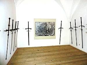 Думаю, что это своего рода "напоминание" о скромности здешней композиции. Широко разрекламированные "многочисленные исторические виды оружия и экипировки" на деле оказались довольно скромными экспонатами, буквально, "скучающими" в просторных залах.