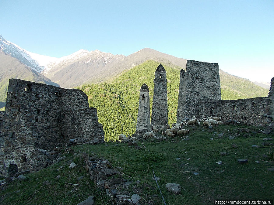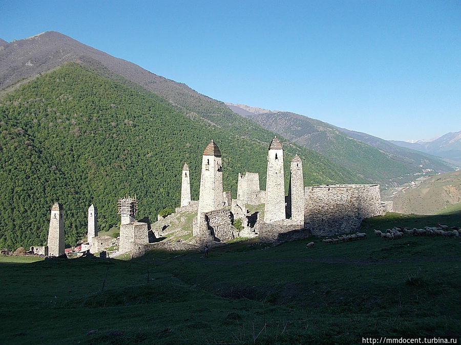 Башенный комплекс Эрзи на северном склоне Джейрахского ущелья, на мой взгляд, является наиболее хорошо сохранившимся средневековым поселением горной Ингушетии. Интересно было его наблюдать, как он постепенно выходит из тени.