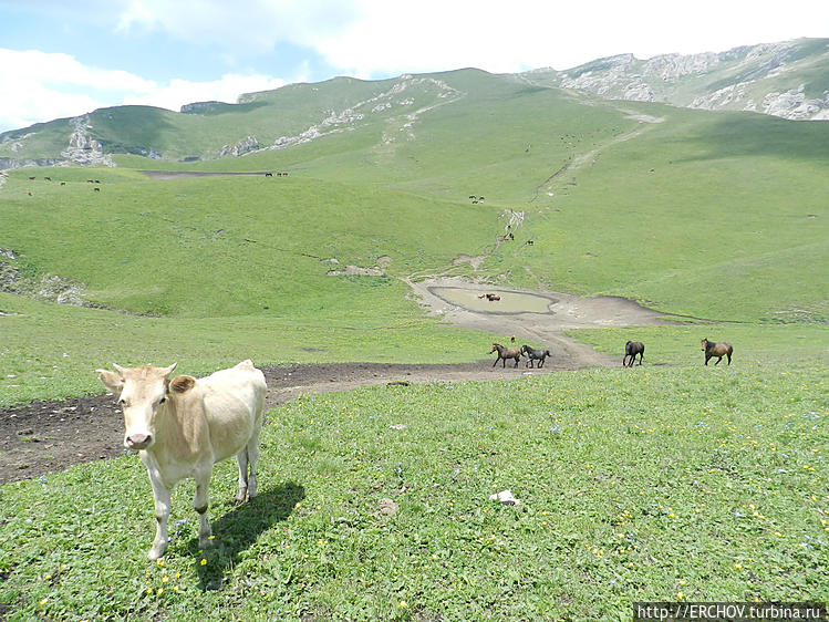 Впрочем, сама гора, будто специально предназначена Создателем под пастбище. Трава здесь необыкновенно сочная, и дождевая вода скапливается в ложбинах, образуя водоёмы.