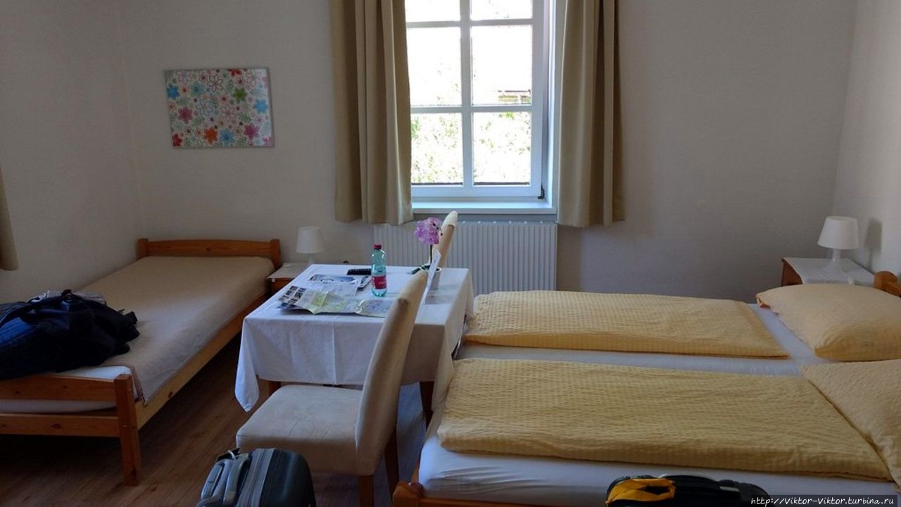 Поэтому только к обеду добрались до Инсбрука, где разгрузились и заселились в отель с длинным названием Pension Stoj budget guesthouse. Этот бюджетный гостевой дом был забронирован заранее, исходя из наличия бесплатной парковки, близости к Старому городу и цены на четырехместный номер.