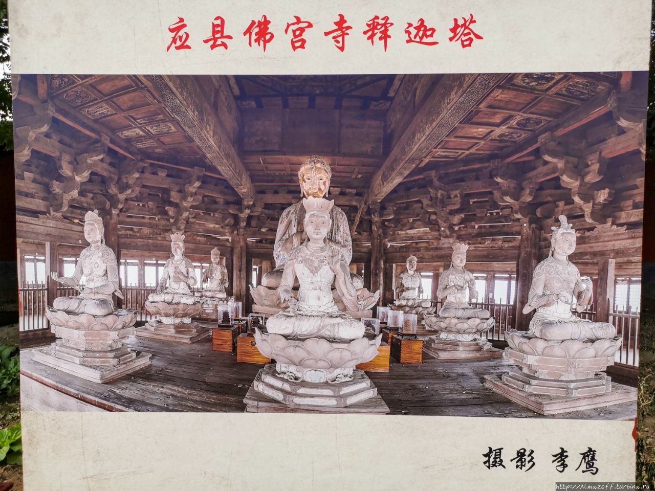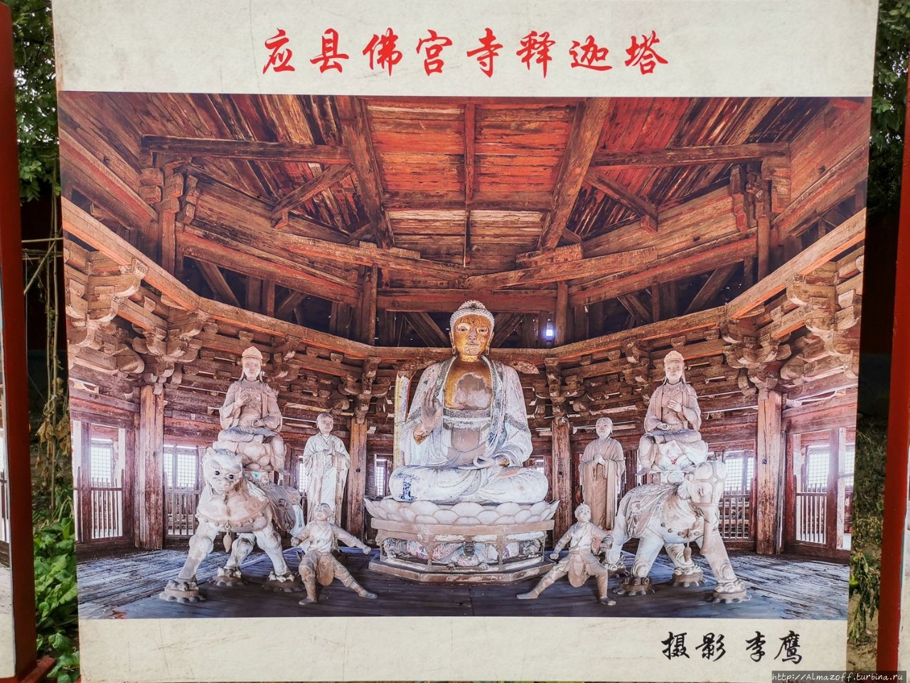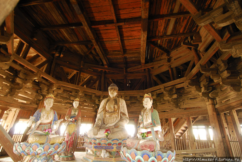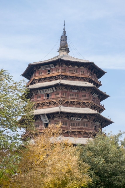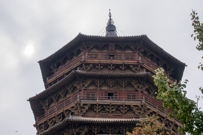Вначале мы поехали в город Иньсянь в 65 км на юг от Датуна, где расположен удивительный объект — деревянная погода Будды Шакьямуни высотой 67 м, самая высокая древняя деревянная погода в Китае.