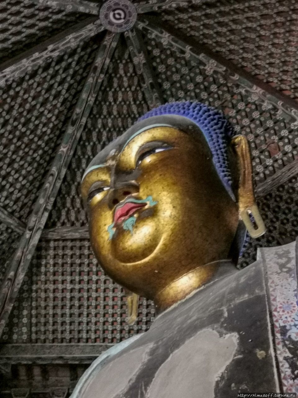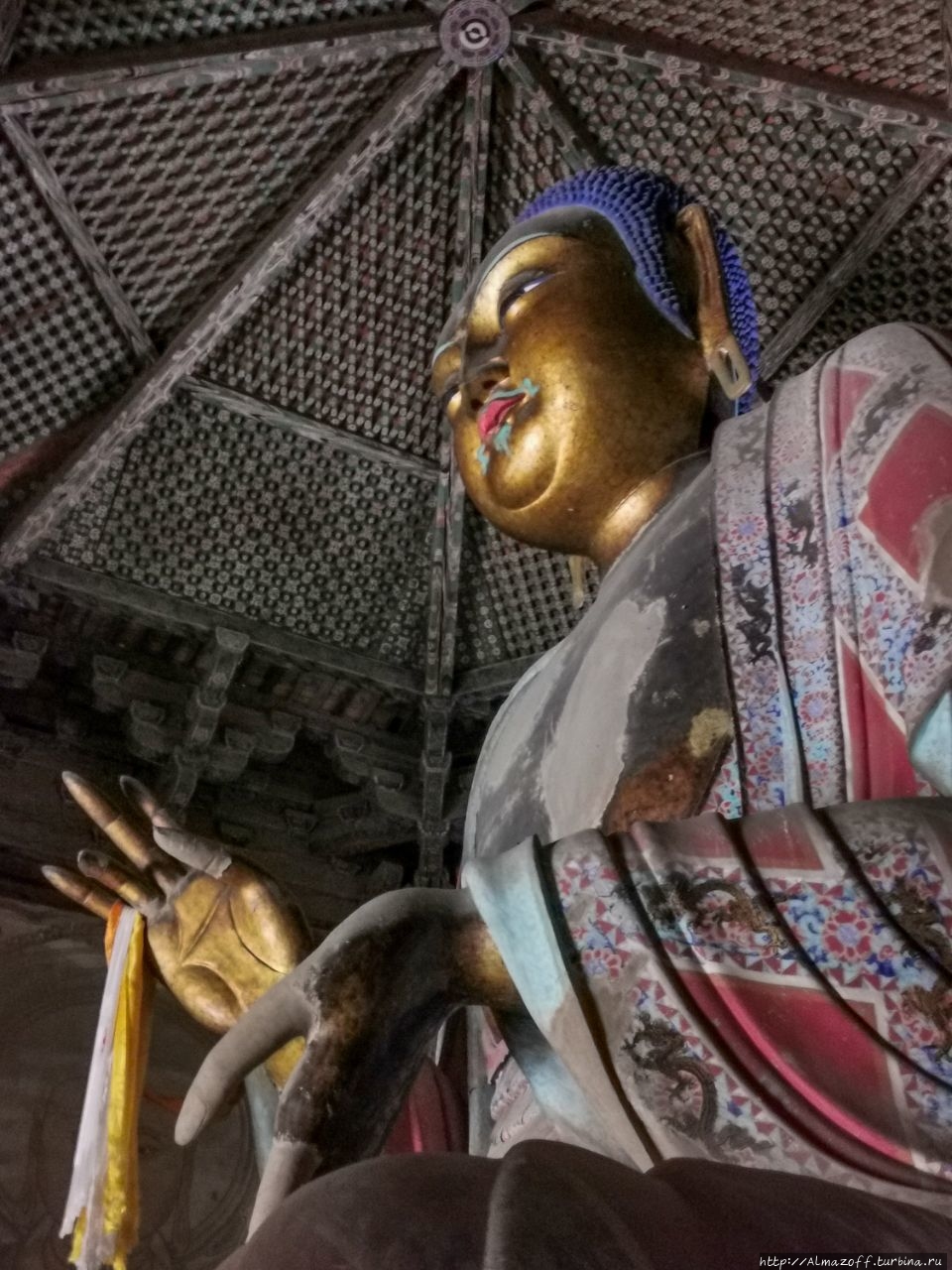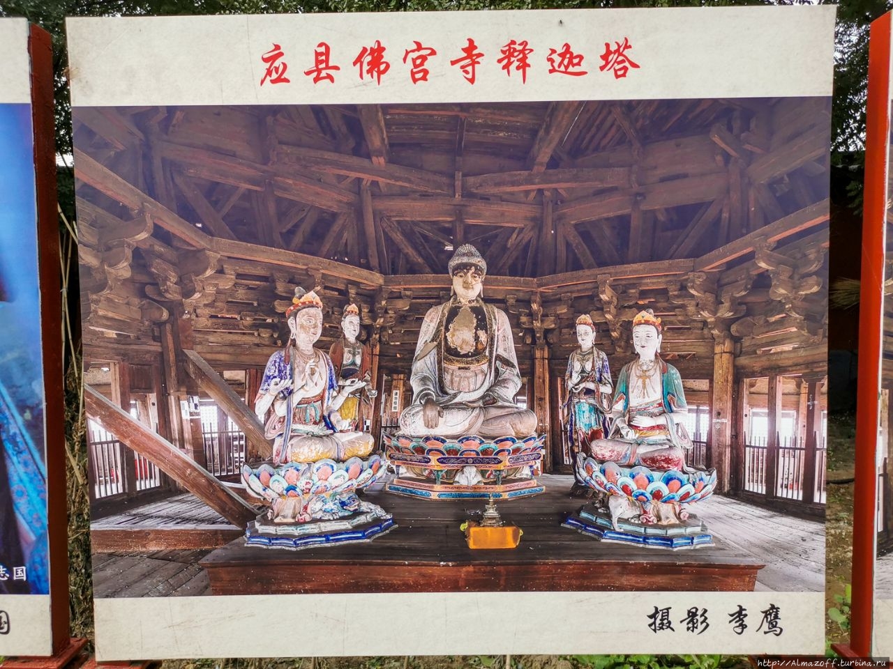 Вначале мы поехали в город Иньсянь в 65 км на юг от Датуна, где расположен удивительный объект — деревянная погода Будды Шакьямуни высотой 67 м, самая высокая древняя деревянная погода в Китае.