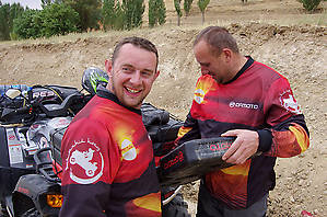 Хорошо еще, что мы тоже в каком-то смысле не чужды такого «асоциального поведения», и тоже любим «пошустрить». В общем, вписались в местный трафик нормально. Правда, и местная полиция не дремлет. В городах и на трассе контролируют скоростной режим и нарушение правил обгона. Для проверки документов нас останавливают практически на каждом КПП. Скорее всего, сказывается близость ирано-иракской границы. Это уже начинает раздражать, поскольку процедура занимает довольно много времени. Переписываются все данные паспортов, номера квадроциклов и номера телефонов. Правда, все происходит очень доброжелательно и культурно. Когда формальности завершены, неизменно интересуются нашей техникой.