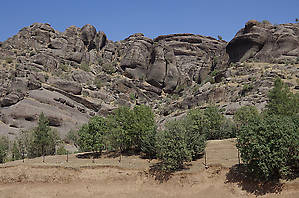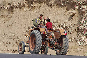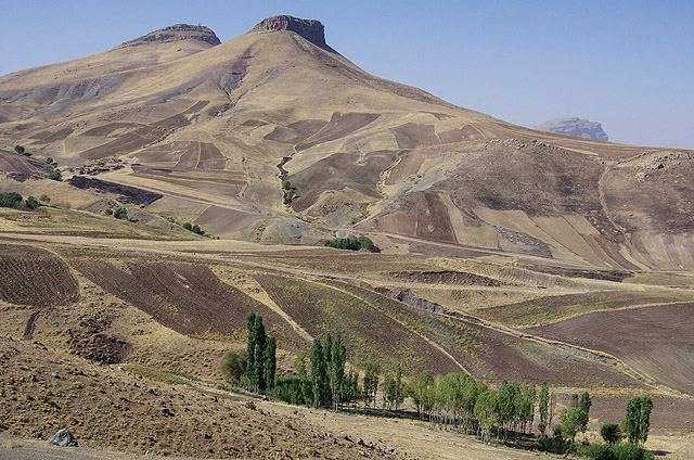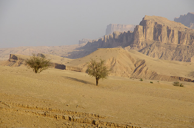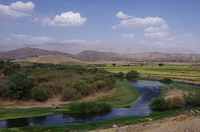 Южнее Хоррамабада дорога спускается в ущелье, окруженное совершенно безжизненными скалами. По непонятой нами причине здесь образовался особый климат. Очень жаркий и сухой. Выразить цифрами, какая тут температура, я не берусь, но вот парадокс: обычно, когда едешь, охлаждаешься за счет набегающего потока воздуха. В ущелье – ощущение такое, что чем выше скорость, тем жарче становится встречный ветер, как от веника в бане.