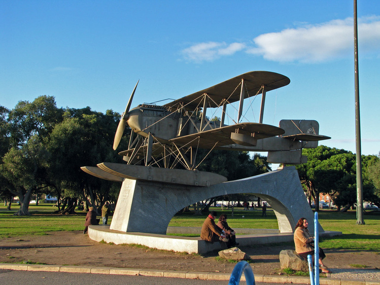 Чуть дальше самолет, установленный в честь первого перелета через Атлантику