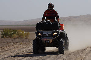 Еще возле продуктового магазина Максим заметил мастерскую, в которой стояли токарные и фрезерные станки, и кипела какая-то работа. Полезно всегда запоминать места, в которых можно получить реальную помощь: техническую, медицинскую и т.п. Мы вернулись в город в надежде найти подходящий по размеру подшипник или выточить из латуни втулку, которая сможет выполнять его функции на оставшиеся до финиша километры. Как оказалось, иранцы, занимающиеся ремонтом типографского оборудования, не только классные мастера своего дела, но и знают в своем городе все точки, торгующие металлоизделиями и запчастями ко всему, что только можно себе представить. Думаю, что если бы нам потребовалось собрать новый квадрик, они бы за одну ночь это сделали. Пока один из механиков на своем автомобиле катал Дядю по городу в поисках подшипника, другой извлек из нашей крышки разрушившуюся наружную обойму. Денег с нас опять не взяли. Это невозможно объяснить – это просто Иран.