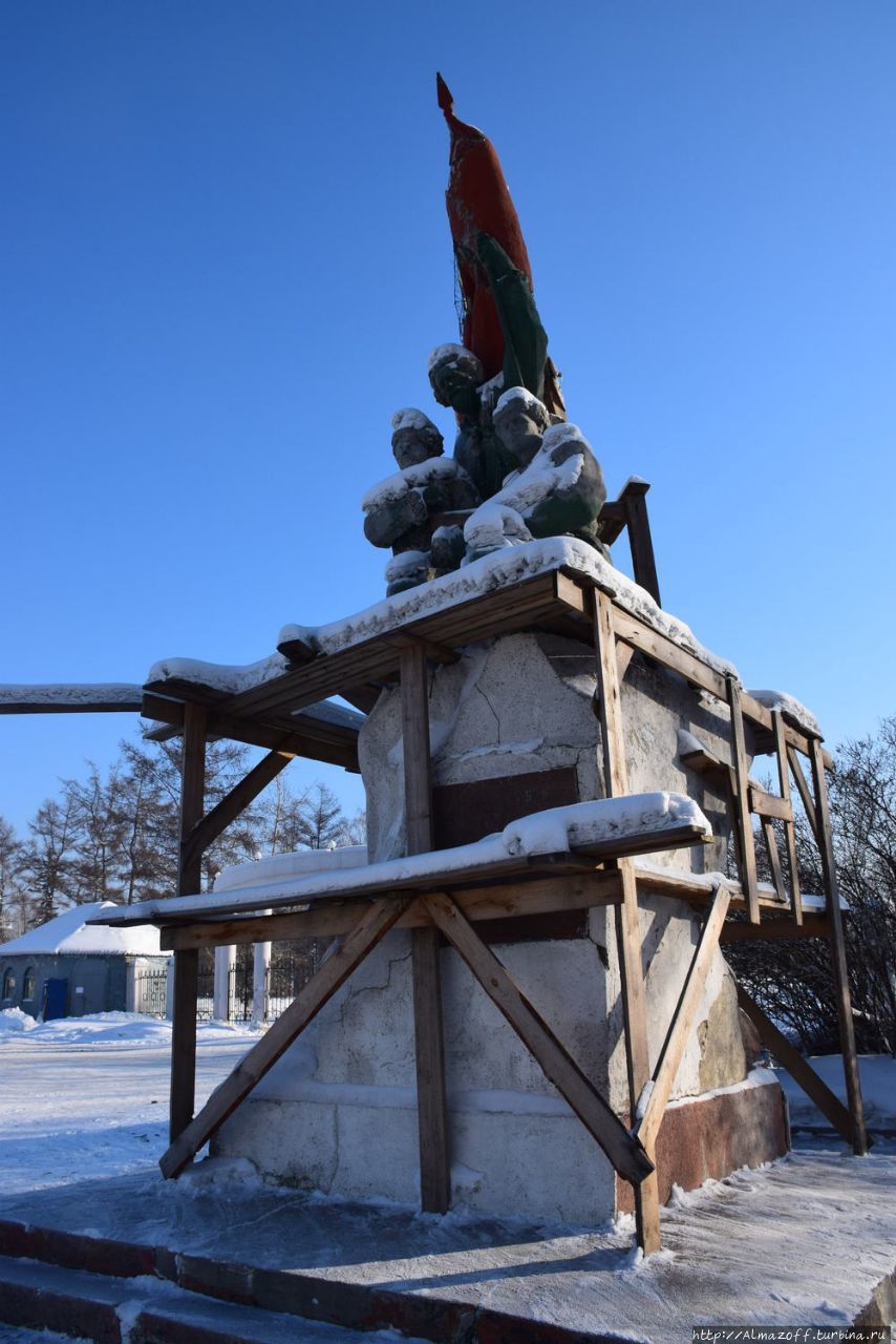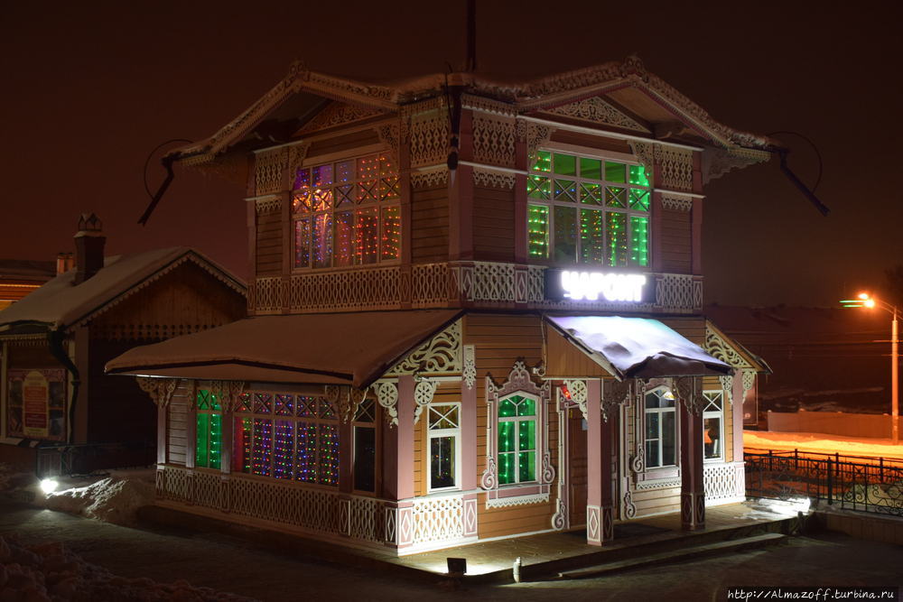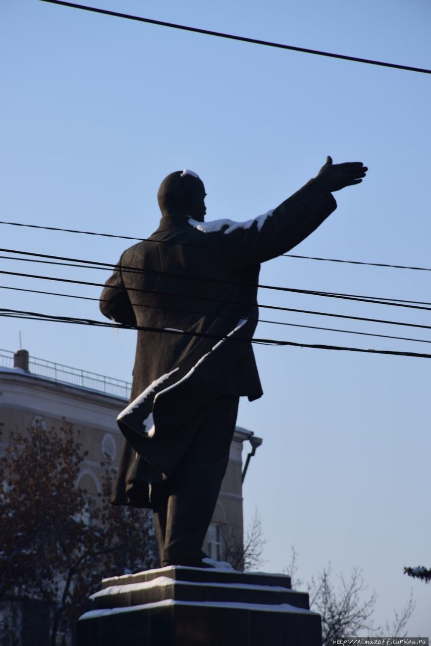 Есть не только деревянные здания, но и каменные, еще памятник Ленину.