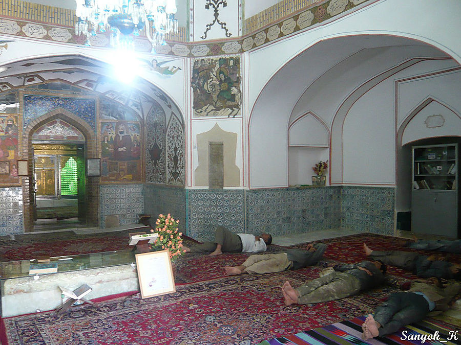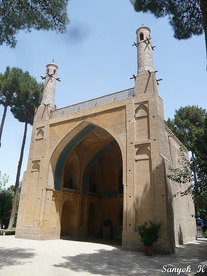 Недалеко от Большого базара находится Общинная Мечеть или Пятничная Мечеть (Масджи́д э Джа́мэ). Это мечеть самая старая в Иране, ее строительство было закончено в 8 в. От неё можно пройти к Минарету мечети Али (Мана́р э Масджи́д э Али) и выйти к мавзолею Харун Вилайет, с мозаикой Хомейни и Кхаменеи снаружи и впечатляющими фресками внутри. В любой мечети разрешали отдыхать во время жаркого дня, поэтому на полу спали рабочие.