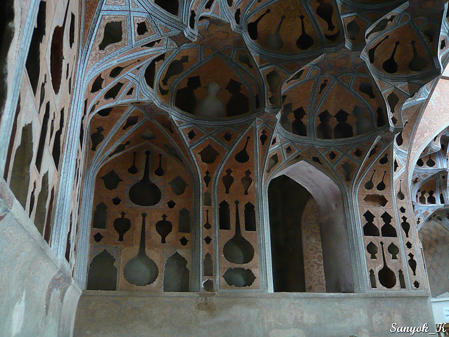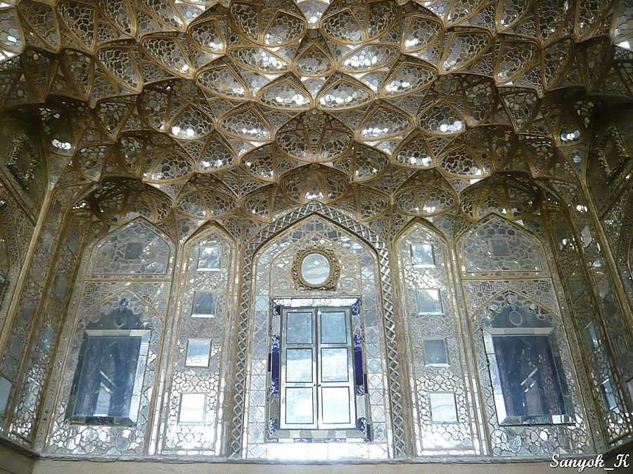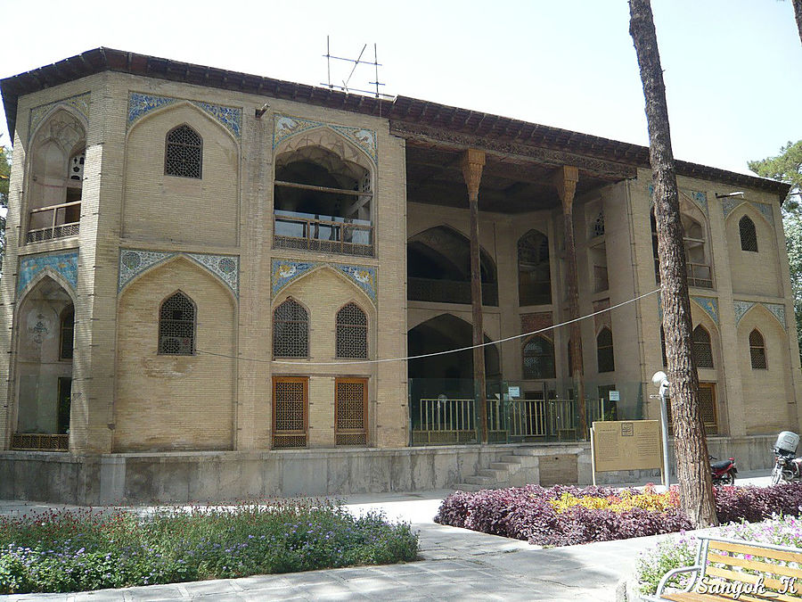 В другой части города Вы найдете похожий дворец с красивым названием «Восемь райских садов» (Ха́шт Бэхе́шт). Раньше он считался самым роскошным дворцом, в наши дни сохранилась в основном архитектура и резные углубления наподобие тех, что встречаются во Дворце Али́-Гапу́.