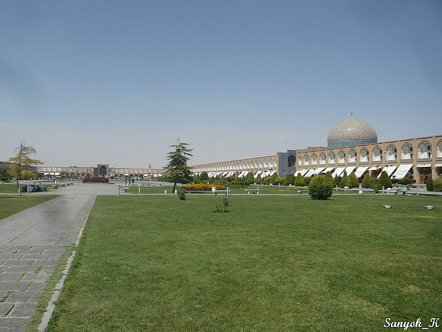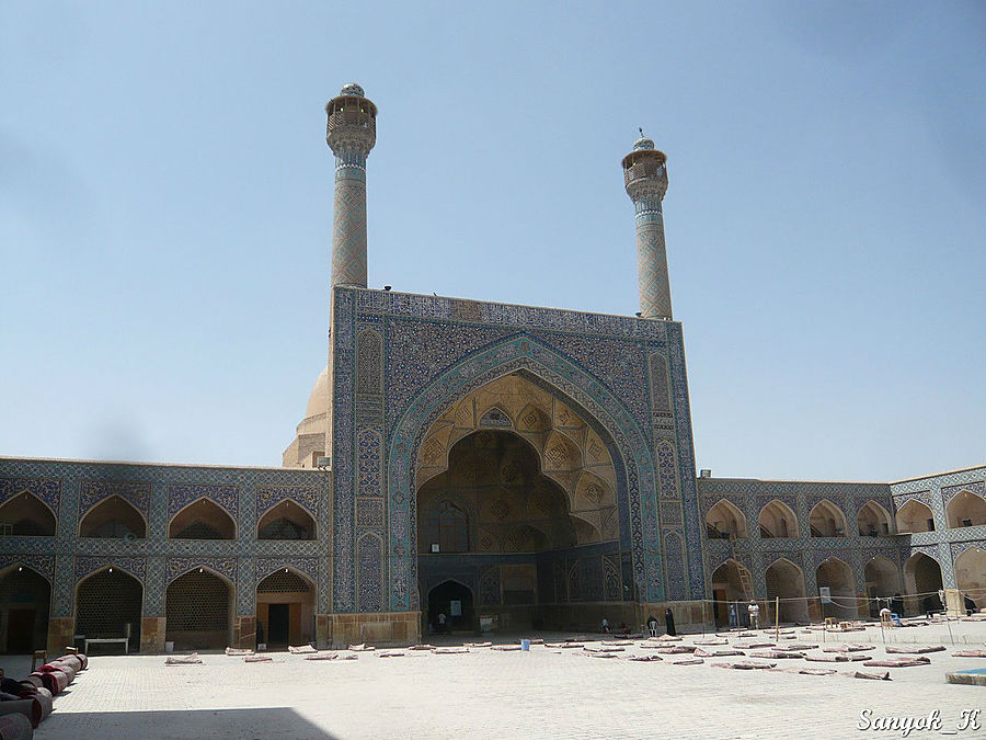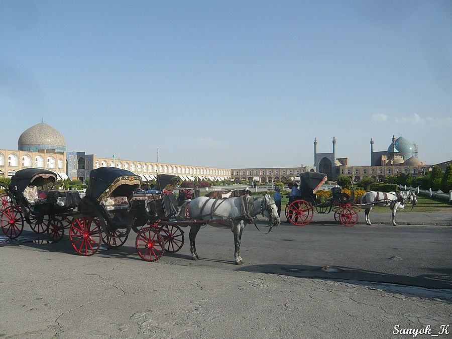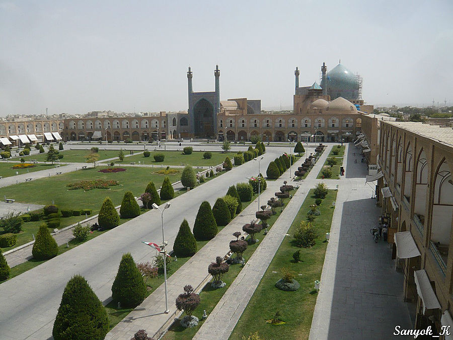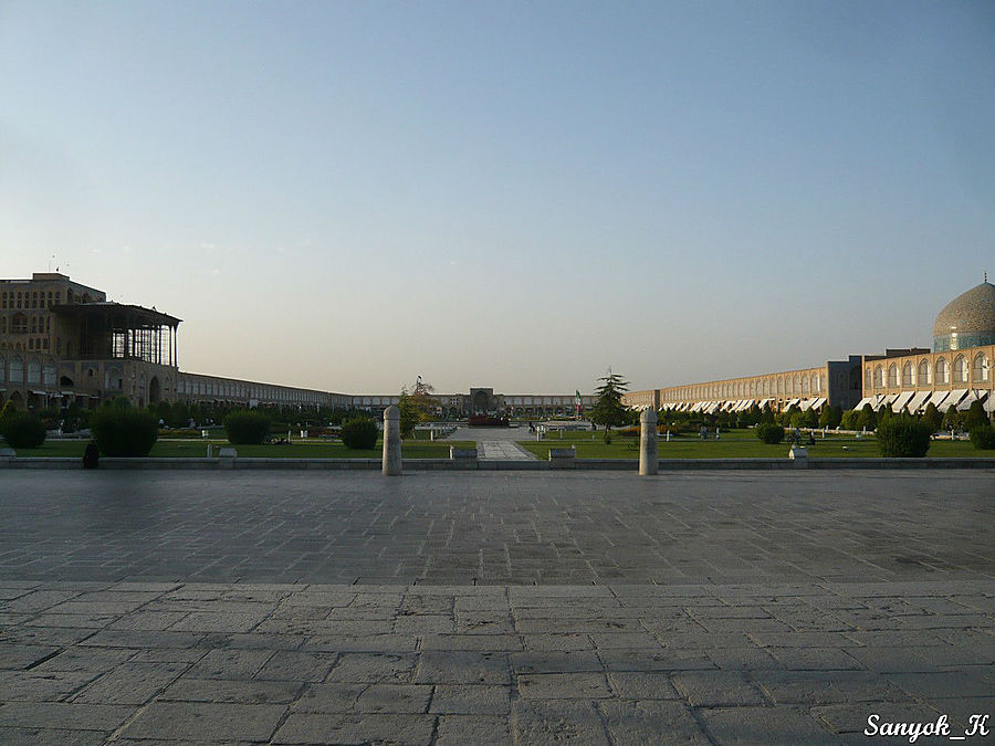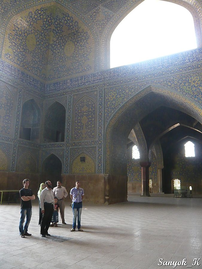С южной стороны площади расположена Мечеть Имама (Масджи́д э Эма́м). Внутренние стены мечети оформлены уникальными рисунками, мозаикой и орнаментом. Если Вы пройдете в центр мечети к месту, отмеченному на полу черным мраморным квадратом, и споете или похлопаете в ладоши, то удивитесь уникальной акустике, когда звук, многократно усиленный, хорошо слышен в любой части мечети. Случайный турист, оказавшийся муллой, спел нам известный мотив из Корана.