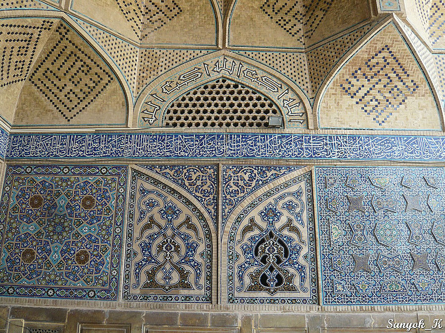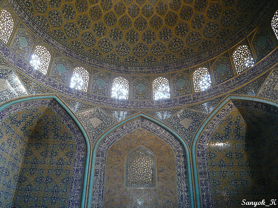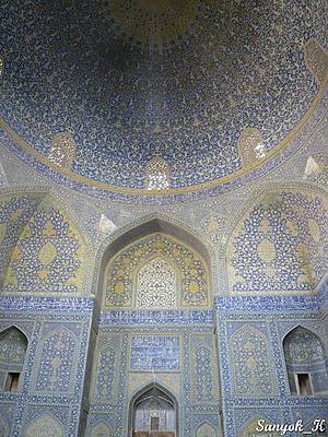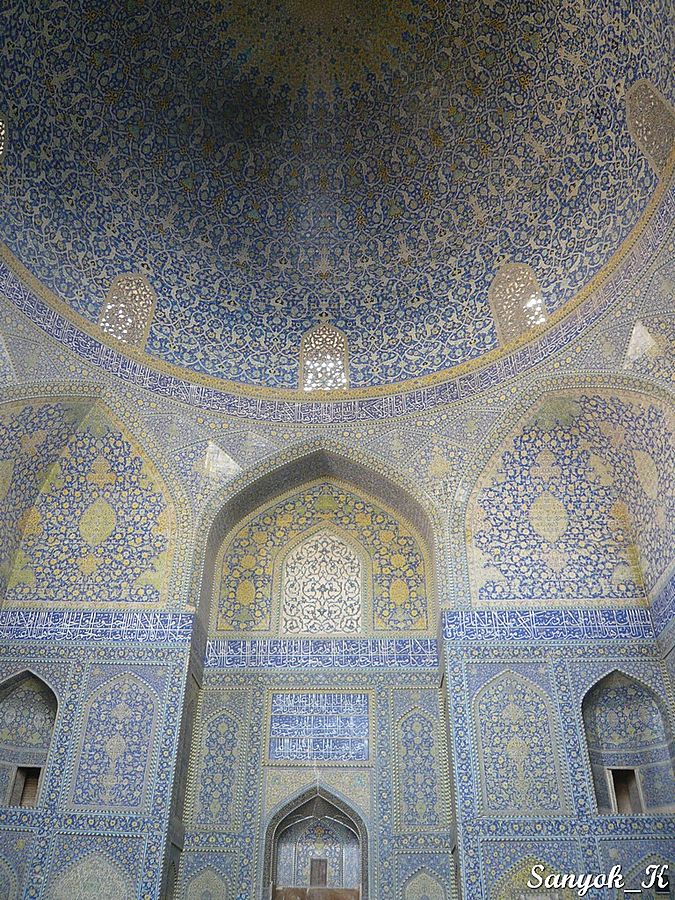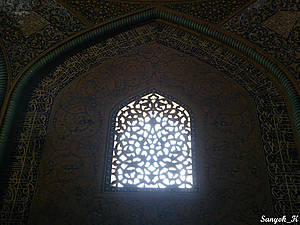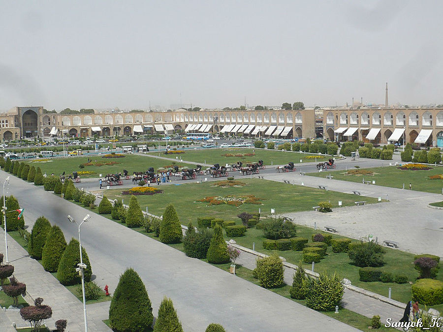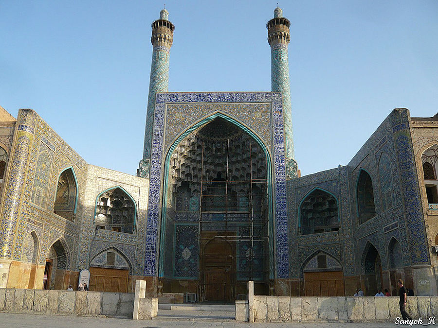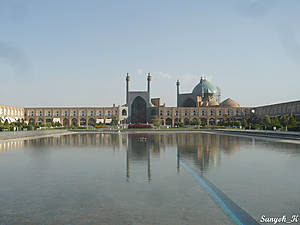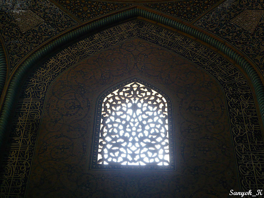 С южной стороны площади расположена Мечеть Имама (Масджи́д э Эма́м). Внутренние стены мечети оформлены уникальными рисунками, мозаикой и орнаментом. Если Вы пройдете в центр мечети к месту, отмеченному на полу черным мраморным квадратом, и споете или похлопаете в ладоши, то удивитесь уникальной акустике, когда звук, многократно усиленный, хорошо слышен в любой части мечети. Случайный турист, оказавшийся муллой, спел нам известный мотив из Корана.