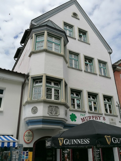 От Рынка мы движемся по Главной улице в сторону ворот Вассертор. Эта улица пешеходная, полная кафе и магазинов, но пока, после пандемии торговля стоит на месте. Не то что в старые времена, когда на каждом углу шла бойкая торговля. Одна площадь называется "Сырный рынок", другая "Сальный", ее украшает фонтан с фигуркой торговки.