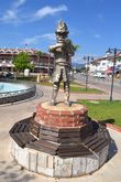 Видимо фонтаны на площади почувствовали жару и самоустранились от выполнения своих непосредственных обязанностей. Хорошо, что дельфины не живые и застыли в движении, а то бы порасшибались об днище фонтана.