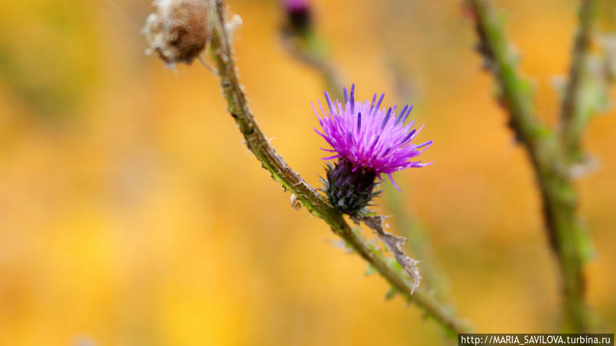 Первой моей находкой стал сухой цветок с листиком, который запутался в паутине. Я решила немного "улучшить" паутину, для чего набирала в рот чай из термоса и пыталась её распылить. Немногие туристы, оказывающиеся рядом, поспешно ретировались. Недалеко от меня три девушки распевали "Господи, помилуй...", а я в это время как раз ползала под ними, пытаясь сфотографировать клевер.