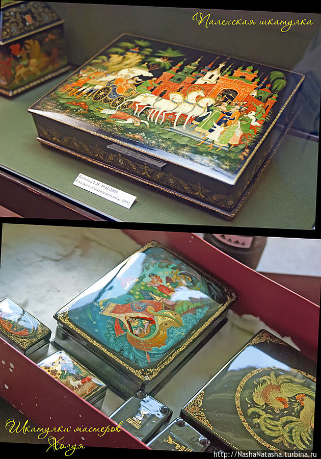Когда я собиралась ехать в Хо́луй , многие из моих знакомых недоумевали, удивлялись, а то и посмеивались, куда это я, мол, собралась. Практически никто из них не знал об этом небольшом поселке в Ивановской области. Только одна моя подруга уверенно сказала: "Ну как же! Там ведь шкатулки делают!" И действительно, уникальные по своей красоте шкатулки и ларцы, но также украшения, игольницы, игрушки выходят из под рук талантливых мастеров Холуя, который наряду с Мстёрой, Федоскиным, Палехом, является известным центром лаковой живописи.