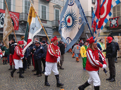Четыре итальянских карнавала, на которых получилось побывать в этом феврале, оказались совершенно не похожими. Различными по задумке, по оформлению и по царящей в городах атмосфере. Самое необычное воздействие на воображение произвёл праздник апельсинов в Иврее. Я о нем скоро расскажу, а сейчас хочу попытаться передать, что мы испытывали в Иврее, прибыв туда за пару часов до начала действа, и пока не вполне представляя, что же это будет.