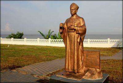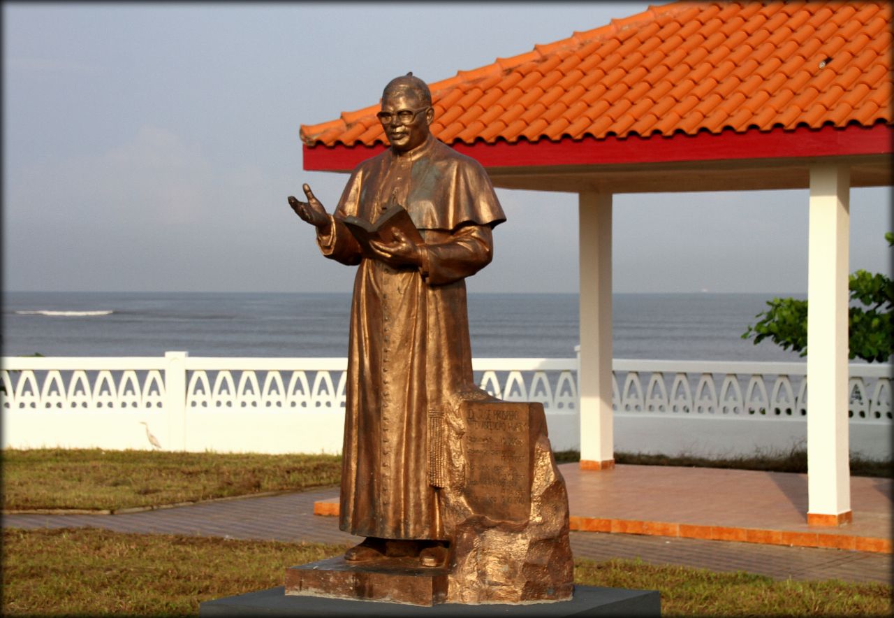 Напротив церкви, через дорогу, практически на берегу океана, установлено шесть памятников, посвящённым религиозным деятелям.