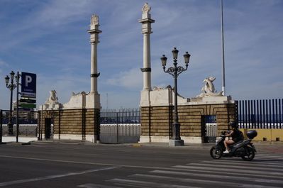 Как и любой ныне город, имеющий «за плечами» багаж многовековой истории, современный Кадис разделен на новый и старый. В него мы и въехали через Земляные ворота (Puerta de Tierra), которые с XVI века являлись частью крепостной стены вокруг города, а свой нынешний облик приобрели 2 века спустя. Эта «граница» — тоже достопримечательность Кадиса.