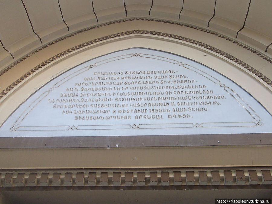 "Этот великолепный храм построен 1954 году с пожертвованиями госпожи Виктории Загерчян и ее потомков в честь памяти ее мужа господина Нерсеса Агы Загерчяна. Строить начали в 11 июня 1954 года и достроили 6 февраля 1955 года" — гласит вывеска.