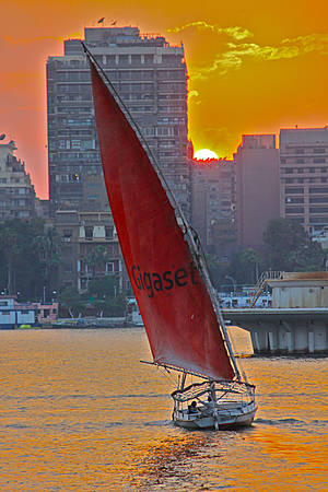 В тот момент, когда Бог Солнца Ра окончательно завершил свой ежедневный моцион, отправившись за горизонт где-то в районе Гизы, Нил выглядел особенно красиво, а красное небо идеально оттеняло лодку со столь же пламенно-красными парусами.